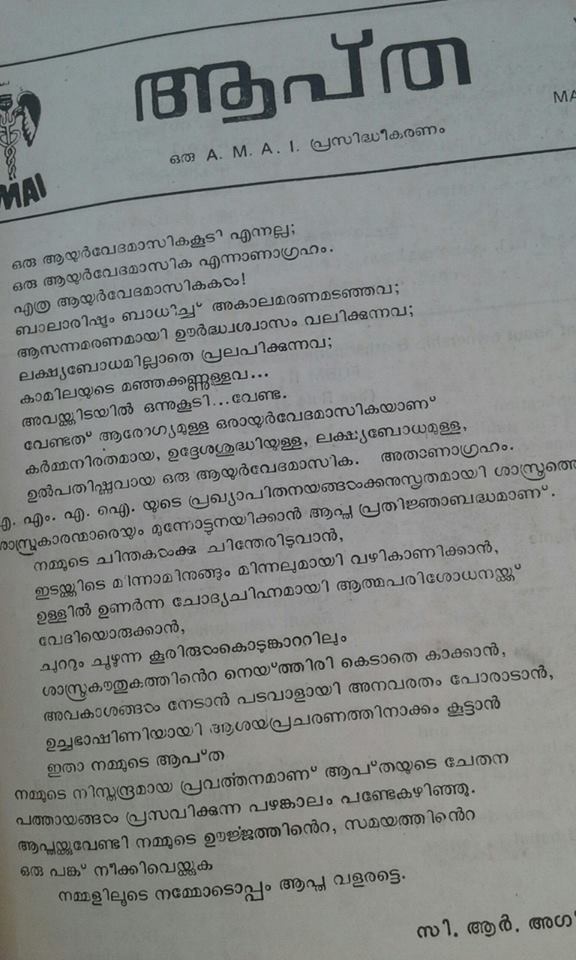 ആയുഷിനുവേണ്ടി ആയുര്വേദ ഐക്യവേദിയുടെ സമരം